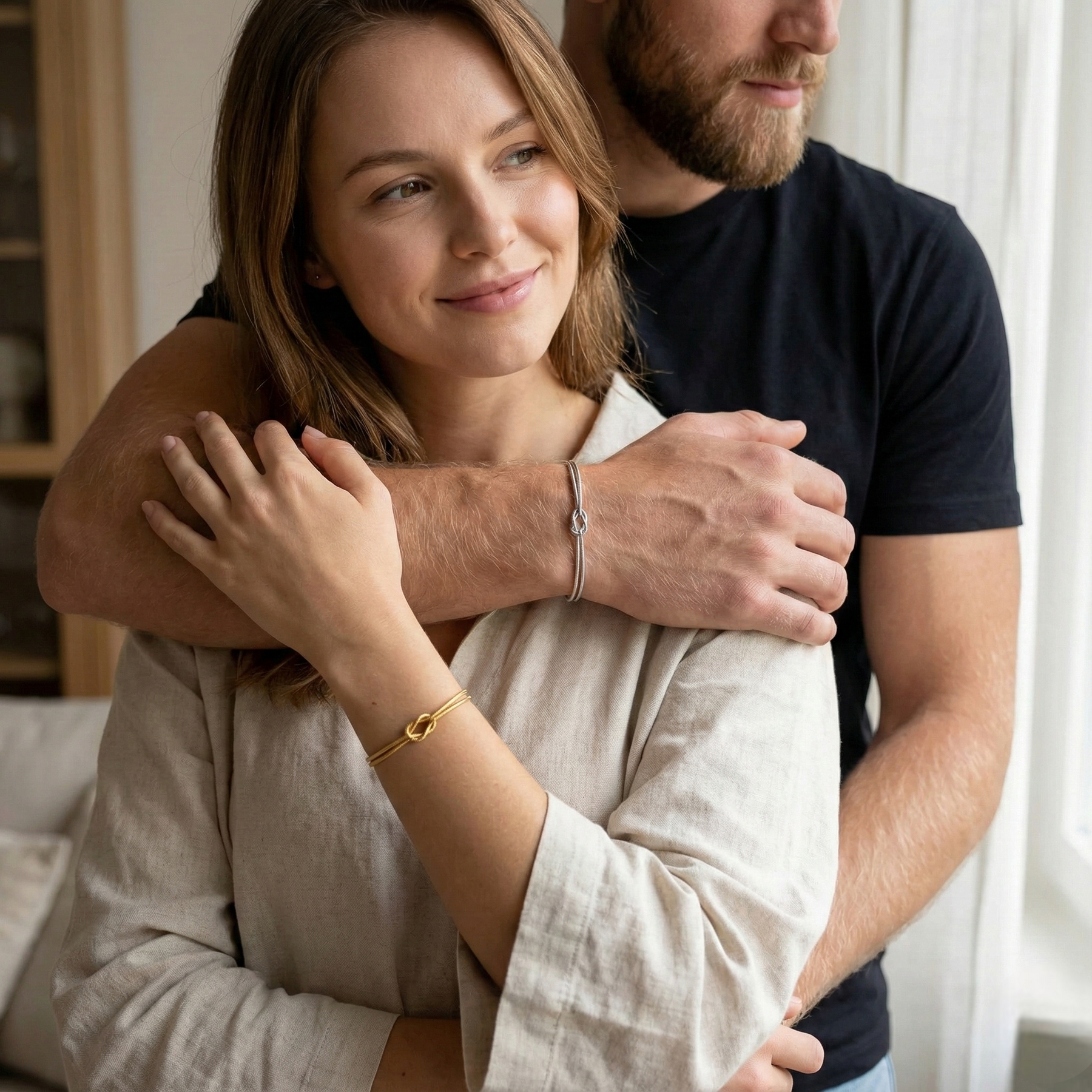 Son design minimaliste en fait un bijou que tu peux porter chaque jour. Que vous soyez ensemble ou séparés, ce bracelet te rappelle que rien ne peut vous éloigner.